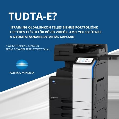 iTraining oldalunkon teljes bizhub portfóliónk esetében elérhetők rövid videók, amelyek segítenek a nyomtatás/karbantartás kapcsán.